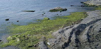 Πρόκειται για το φαινόμενο του ευτροφισμού, κατά το οποίο τα λιπάσματα που καταλήγουν στη θάλασσα μέσω των νερών των γύρω ποταμών οδηγούν στην άναρχη ανάπτυξη των φυκιών. Αυτό, εκτός των άλλων, έχει ως αποτέλεσμα να δημιουργείται στην επιφάνεια του νερού ένα εξαιρετικά αντιαισθητικό πυκνό στρώμα από φύκια, το οποίο καλύπτει τη θάλασσα σαν χαλί.