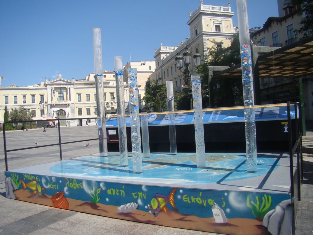 Την υφιστάμενη δραματική κατάσταση των ωκεανών έχει ως θέμα του το έργο, που υπογράφει ο αμερικανός καλλιτέχνης Fred George και η ιρλανδή χορογράφος και καλλιτεχνική διευθύντρια του Staatstheater Saarbruecken Marguerite Donlon, με την παραστατική απεικόνιση του παγκόσμιου χάρτη και πάνω του των επτά θαλασσών, με επτά στήλες από πλεξιγκλάς. Η σύνθεση συμπληρώνεται από έναν πίνακα πληροφοριών με στοιχεία...