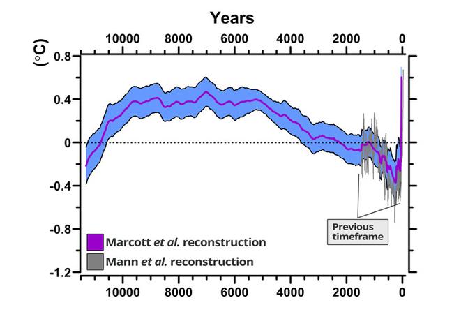 Χρησιμοποιώντας για πρώτη φορά στοιχεία από 73 περιοχές του πλανήτη, οι επιστήμονες κατάφεραν να ανακατασκευάσουν με μεγαλύτερη λεπτομέρεια από κάθε άλλη φορά την θερμοκρασιακή ιστορία της Γης, ανατρέχοντας πίσω έως την λήξη της τελευταίας εποχής των παγετώνων. Το βασικό τους συμπέρασμα είναι ότι σήμερα ο πλανήτης μας είναι θερμότερος από ό,τι είχε υπάρξει κατά το 75% των τελευταίων 11.300 ετών.