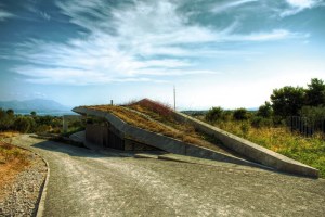 Το μοντέρνο κτήριο της φωτογραφίας με την πράσινη οροφή αναδύεται από το έδαφος της Αττικής. Σχεδιασμένο από τους αρχιτέκτονες του Tense Architecture Network με έδρα την Αθήνα, το κτήριο στη Συκάμινο Ωρωπού είναι απόλυτα ενσωματωμένο, σχεδόν εξαφανίζεται μέσα στο άνυδρο τοπίο.