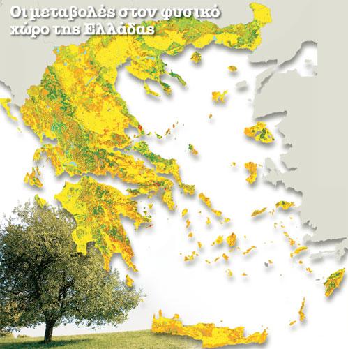 Σημαντικές μεταβολές στον φυσικό χώρο της Ελλάδας σε χρονικό διάστημα είκοσι ετών αποκαλύπτει η πρώτη απεικόνιση καλύψεων γης που πραγματοποιήθηκε στη χώρα μας.