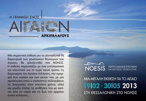 Μία σημαντική έκθεση για τη γένεση και τη δημιουργία των γεωλογικών θησαυρών του Αιγαίου θα φιλοξενηθεί στο ΝΟΗΣΙΣ. Η έκθεση παρουσιάζει, με έναν εντυπωσιακό και ελκυστικό για το ευρύ κοινό τρόπο, τη δημιουργία του Αιγαίου πελάγους, την ομορφιά των νησιών και των ακτών του, με μια προσέγγιση μέσα από την οποία ο επισκέπτης συλλαμβάνει τις διεργασίες στον απώτατο χρόνο, αλλά και γεμίζει επίσης τις αισθήσεις του με εικόνες από τα νησιά και τη ζωή του αρχαίου αυτού πελάγους.