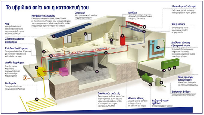 Νέα δεδομένα στην κατασκευή κατοικιών στην Ελλάδα, φέρνει η έκρηξη στις τιμές του πετρελαίου και γενικότερα η μεγάλη αύξηση στο κόστος θέρμανσης και ψύξης ενός κτιρίου. Ολο και περισσότεροι κατασκευαστές στρέφονται στην οικοδόμηση των λεγόμενων «πράσινων» σπιτιών που αφενός είναι φιλικά προς το περιβάλλον και αφετέρου περισσότερο οικονομικά από μια συμβατική κατασκευή.Ωστόσο, η χρήση νέων τεχνολογιών και η εκμετάλλευση όλων των Ανανεώσιμων Πηγών Ενέργειας που διαθέτει η Ελλάδα, δίνουν τη δυνατότητα για την κατασκευή των κατοικιών του μέλλοντος. Των λεγόμενων και υβριδικών σπιτιών (hybrid house) τα οποία μπορούν να παράγουν τουλάχιστον το 70% της ενέργειας που απαιτείται για τη λειτουργία του.